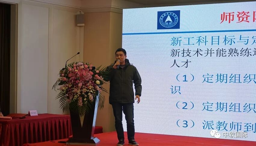 沈阳工程学院教务处处长栾好利与会分享了“努力建设高水平应用大学”主题报告,栾好利介绍到目前沈阳工程学院近5年就业率均在95%以上,连续四年在省内排名第一,而这一切得益于学校专注于培养生产一线的应用型高级工程技术人才,而与“中软国际”共建现代产业学院这一重要举措加速了产教深度融合,对应用型人才培养起到积极的推动作用。