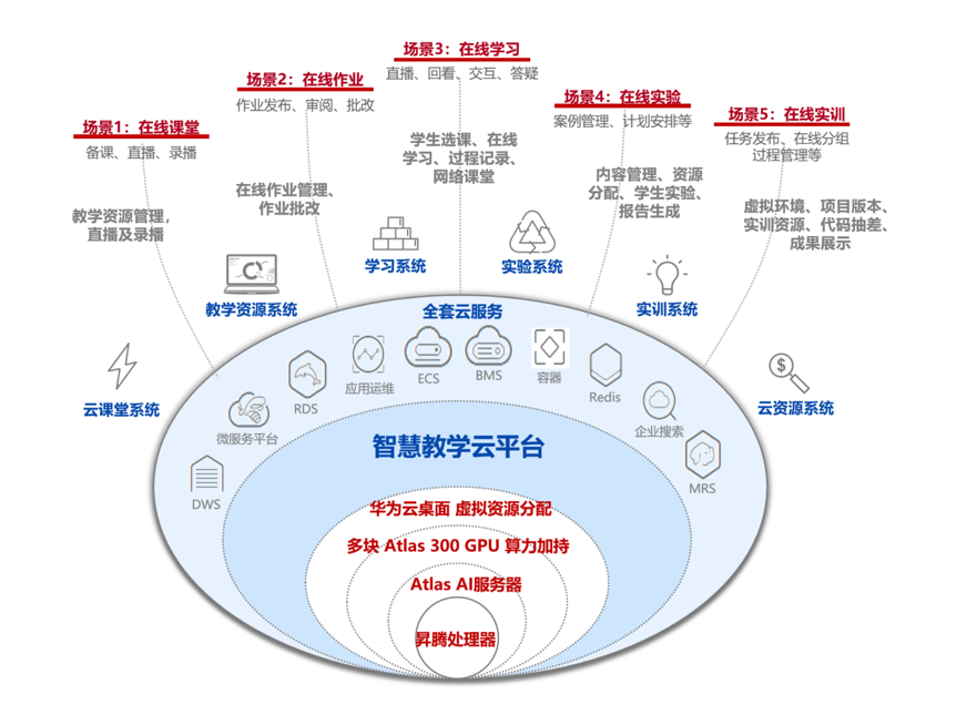 “新基建”推动下,以鲲鹏为代表的多样性计算发展不断深入,深刻改变着产业数字化进程,产业的发展急需多学科背景的复合型创新人才。面对产业快速发展数字化人才短缺,中软国际教育科技集团整合产业优势,为高校构建高性能算力、智能教学管理、学习与实战为一体的智慧教学云平台。